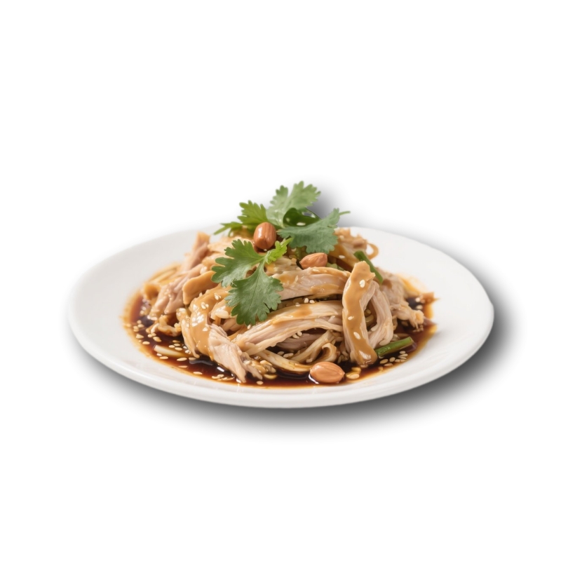 Zutaten: Hähnchenschenkelfleisch, Koriander, Knoblauch, Erdnusspaste, Zucker, Sesampaste, Salz, Sesamöl, Sojasauce (Sojabohnen, Wasser, Weizen, Salz), Kochwein
